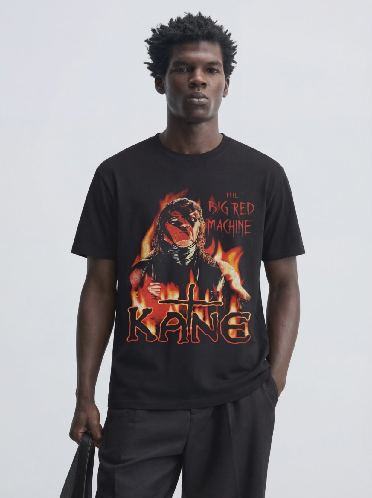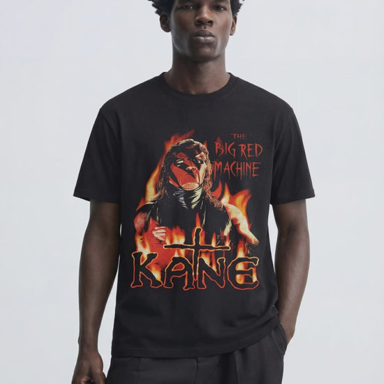 Unleash raw intensity with this Kane “The Big Red Machine” graphic t-shirt, inspired by one of the most dominant and intimidating legends in wrestling history. Featuring a fiery front graphic with Kane’s iconic masked look surrounded by flames, this tee delivers an unmistakable statement of power and attitude.