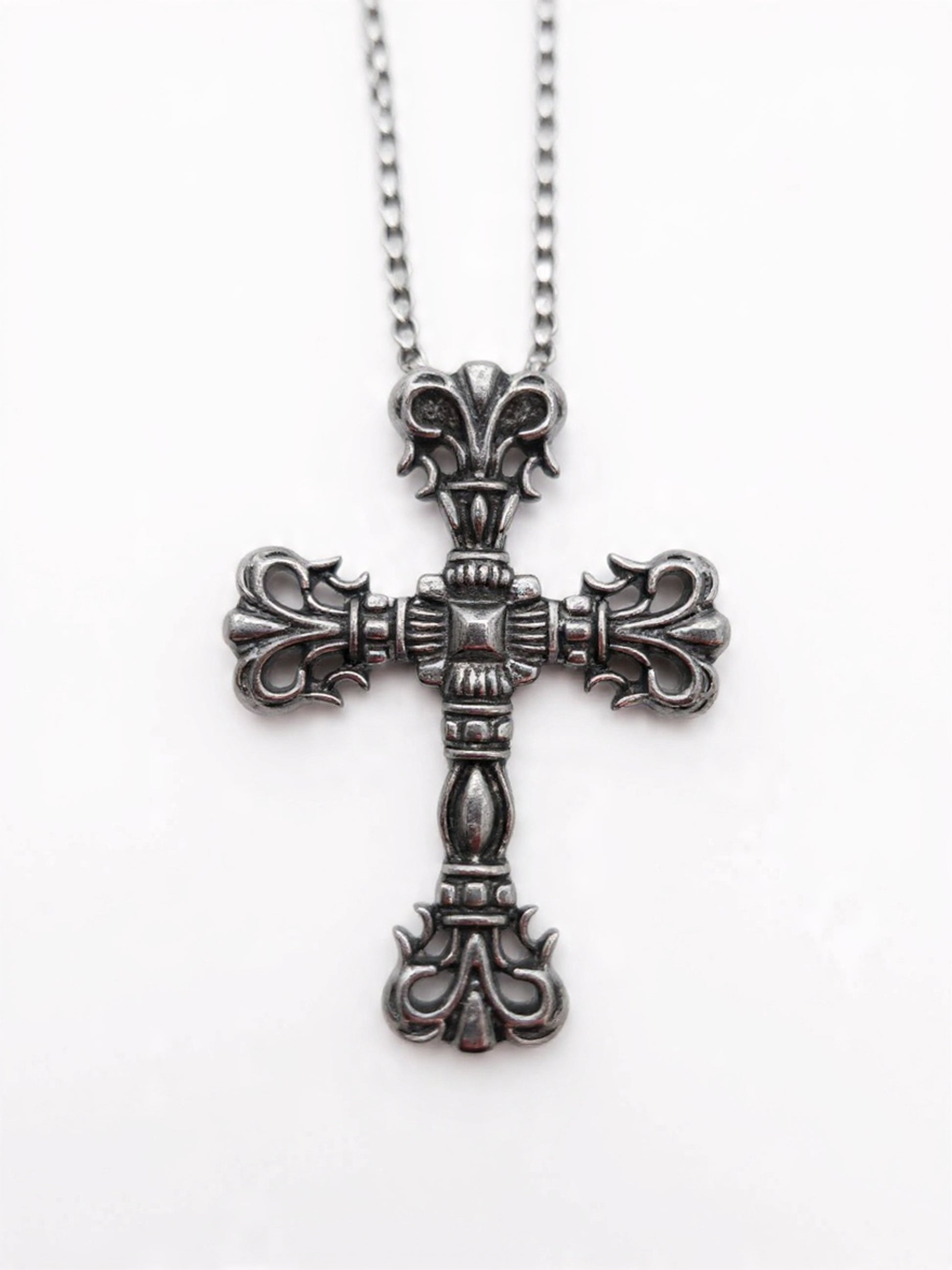 This Ornate Gothic Cross Necklace features an intricately carved cross design with vintage-inspired detailing and a dark silver-tone finish. Suspended from a durable chain, it delivers a bold gothic aesthetic while remaining versatile enough for daily wear. A strong statement accessory for those who appreciate classic symbolism with an edgy, timeless look.